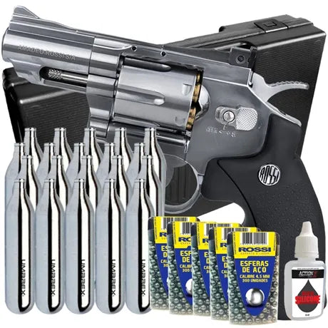 REVÓLVER CO2 ROSSI 708S FULL METAL NIQUELADO 4.5 2,5 POLEGADAS